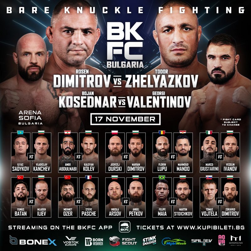 BKFC Bulgaria на 17-ти ноември е първото издание на веригата BKFC в Европа. В турнира участват топ бойци от различни спортове, включително и бивши шампиони на UFC.