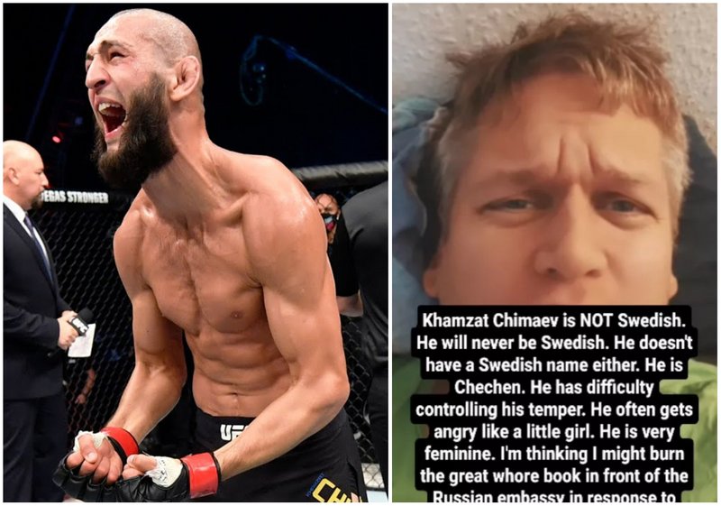 "Хамзат Чимаев НЕ Е швед. Той никога няма да бъде швед. Той няма шведско име. Чимаев е чеченец. Трудно контролира нрава си. Често се ядосва като малко момиченце. Хамзат е много женствен.