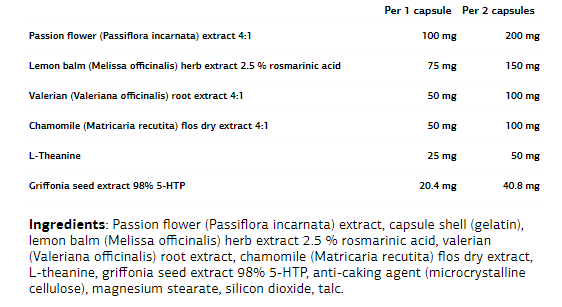 Тази уникална формула включва също L-теанин, който влияе положително на производството на серотонин и допамин, като по този начин помага за повишаване на настроението. Начин на употреба: Приемайте 1-2 капсули един час преди лягане.
