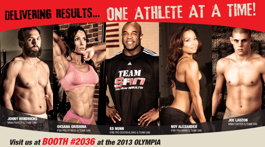 На хранителни добавки SAN са доверили своето възстановяване ММА бойците Johny Hendrics, Joe Lauzon, боди билдъра Ed Nunn, както и красaвиците Noy Alexander и Oksana Grishina.